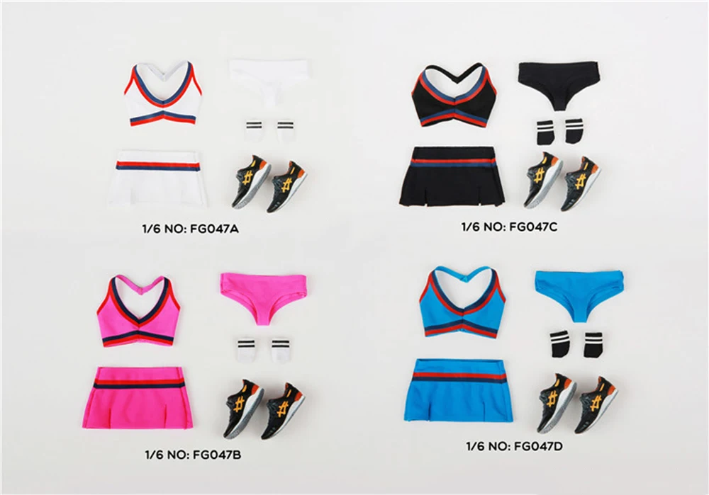 Four colors 1/6 Fire Girl Toys Black Cheerleading Skirt Sports Bra Dress Clothes Set F 12'' Big Che